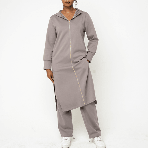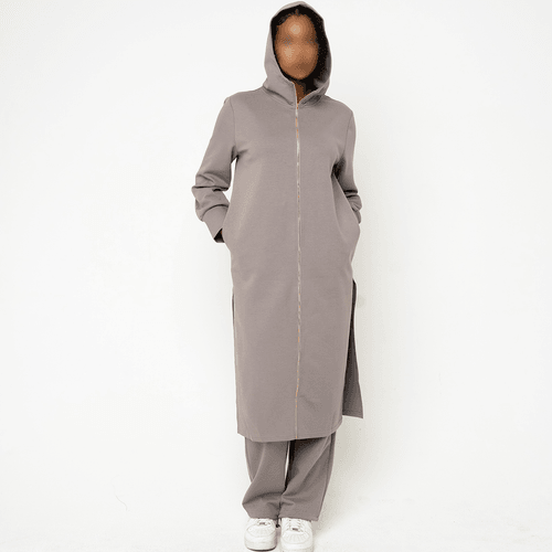 Elevate your activewear collection with our latest Hooded Sportswear Abaya, expertly designed for comfort, function, and style. This full-zip abaya is crafted from a soft, breathable cotton fleece knit, offering superior warmth and freedom of movement for an active lifestyle.