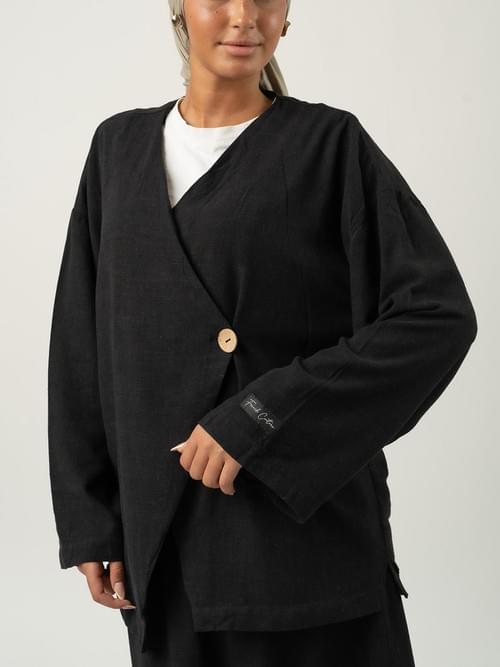 Minimalist Elegance: Custom Black Co-ord Set | Single Gold Button | OEM Customizable