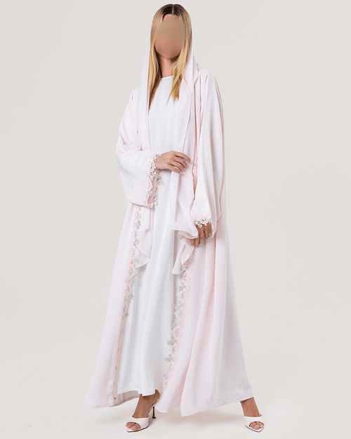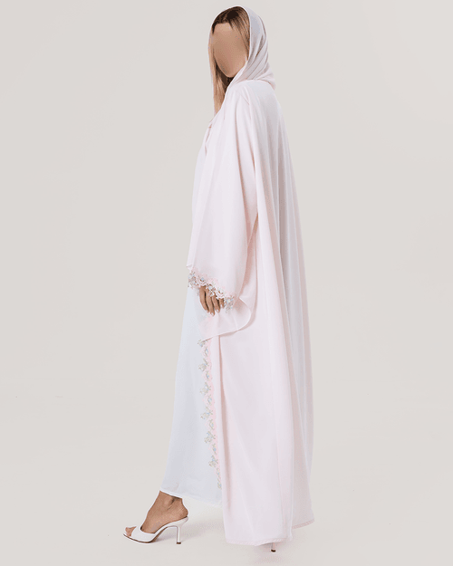 This elegant pastel open front abaya exemplifies our expertise in manufacturing high-quality modest wear for global brands. Crafted from premium, airy Korean Nida fabric, this design is perfect for summer collections and features exquisite colorful lace detailing on the front placket. We offer full customization on this style to create a unique piece for your brand.